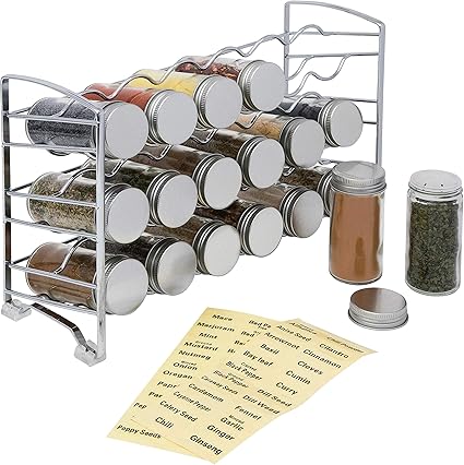 Each of the jars sport twist-on lids with a closed setting perfect for keeping the flavors locked in and dust out. FREE Shipping by Amazon. Stainless Steel 12 Jar Spice Rack holds all of your favourite spices.